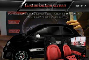 玩家想要开着闻名于世的Abarth赛车,必须拿起图卡对准摄影机,才可启动AR 赛车;若要享受改装车体乐趣,只要选择图卡上按钮,就可将「车体颜色」、「轮胎钢圈」、「内装座椅」进行变装;另外加选「涡轮增压引擎」可以满足对速度的爱好与需求。