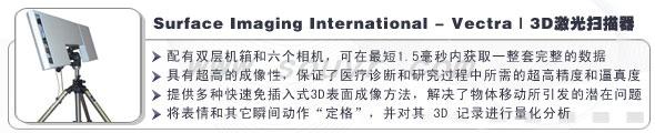 Vectra是一款针对医疗用户研发的高解析度光学扫描器,配有双层机箱和六个相机,可在最短1.5毫秒内获取一整套完整的数据。该产品目前的覆盖范围是180度,预计在十月份将提升至360度。该产品便于携带,在医疗应用领域有着良好口碑。