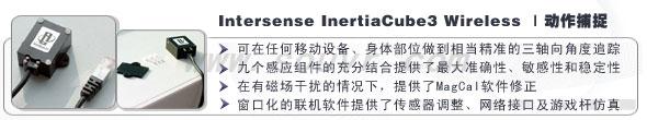 无线InertiaCube3 (IC3)符合可活动、省电、和三轴向角度传感器的设计。因为有着铝制的外壳、更宽广的操作温度范围、以及低电力的消耗,所以适合用来头部追踪、动态仿真、训练和危机处理的应用。